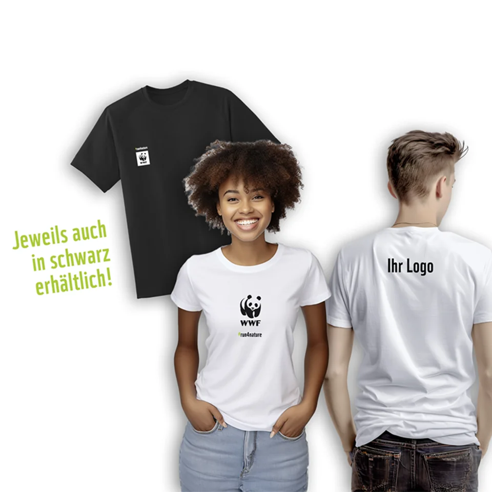 Bestellen Sie bis 16.04. fair produzierte, vegane Funktionsshirts (Mindestbestellmenge 5 Stück) zum Preis von 27,90 EUR (inkl. Versand). So machen Sie Ihre Teilnahme am WWF Firmenlauf sichtbar, fördern das Wir-Gefühl unter den Läufer:innen, geben eine schöne Erinnerung mit nach Hause und unterstützen mit 5 EUR pro Shirt die Naturschutzprojekte des WWF.
